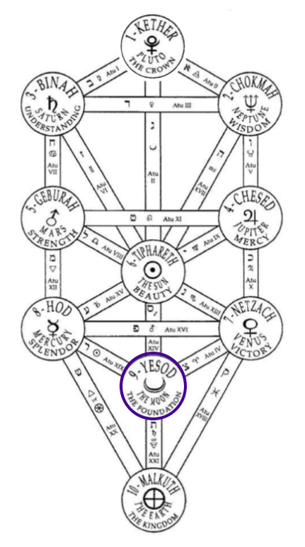 Yesods grundpræg erindres fra besøgene i Grusomhed og Vinding. I The Book of Thoth læser vi: