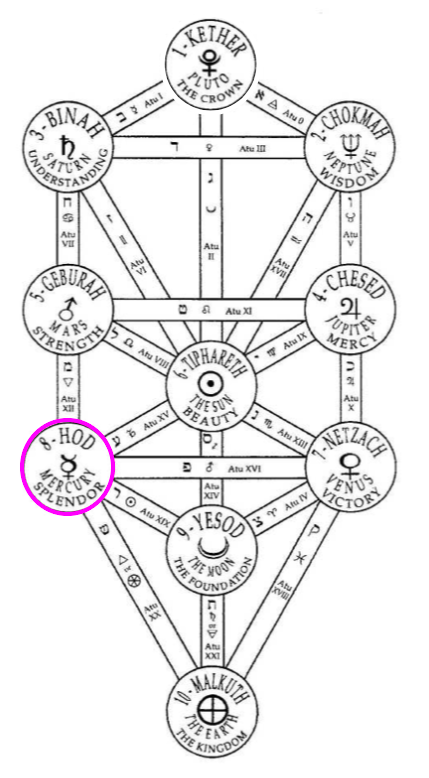 The four Eights are attributed to Hod. Being in the same plane as the Sevens on the Tree of Life, but on the other side, the same inherent defects as are found in the Sevens will apply.